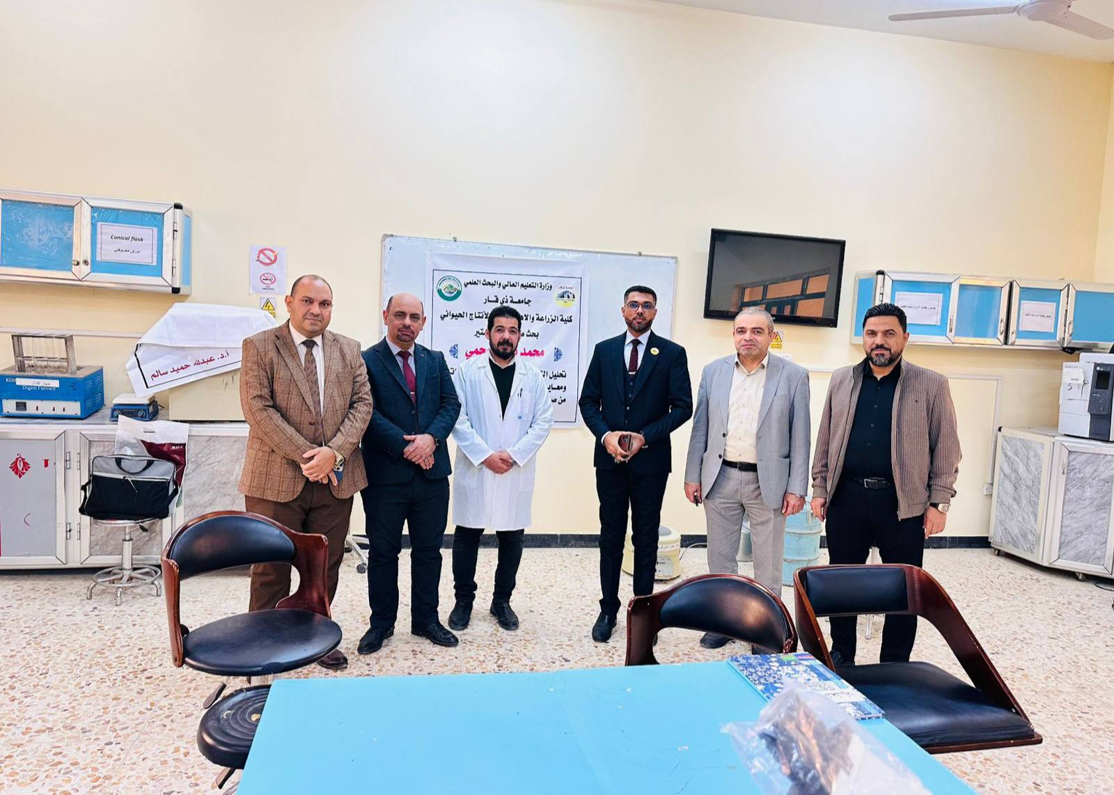 وشملت الجولة الأخيرة الاطلاع على مشاريع بحوث الطلبة (رسول ناجي حمود، وسوزان صاحب خلف، ومحمد نعمة عجمي) من قسم الإنتاج الحيواني، بإشراف الأستاذ الدكتور عبد الله حميد سالم، حيث تابعت اللجنة مراحل تقدم العمل البحثي ونسب الإنجاز، وقدمت جملة من التوجيهات العلمية الهادفة إلى دعم مسار البحث وتذليل التحديات التي قد تواجه الطلبة.