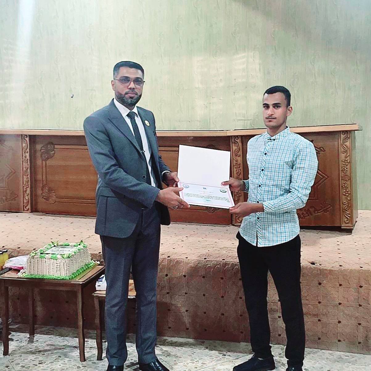وشهد الحفل تكريم نخبة من الطلبة المتفوقين، إذ حصلت الطالبة حوراء عقيل كاظم على المرتبة الأولى، تلتها الطالبة دعاء علي حسيب في المرتبة الثانية، فيما جاء الطالب محمد كاظم زغير في المرتبة الثالثة.