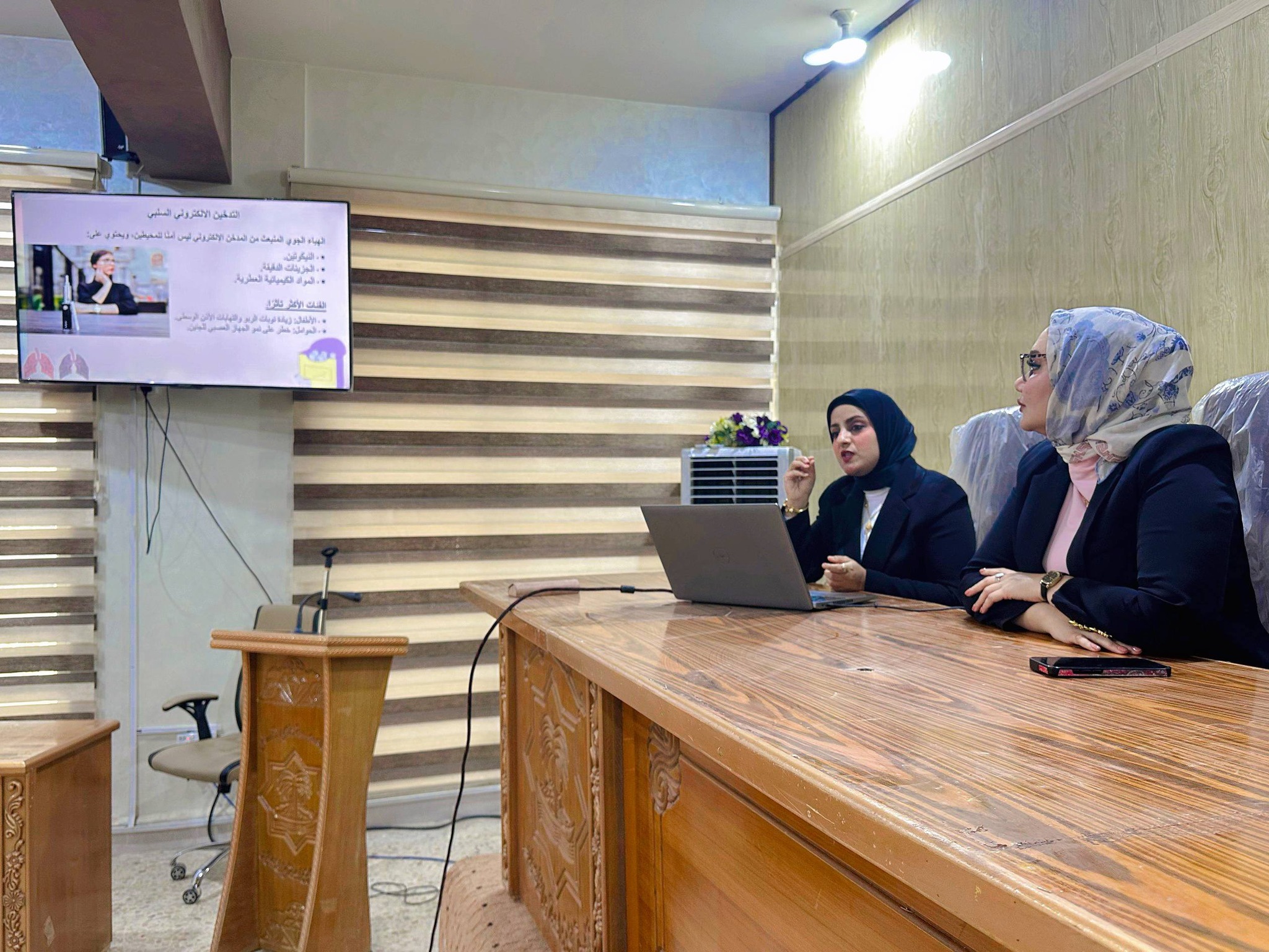 قدمت الورشة كل من م. د نورة كريم عبد التدريسية في قسم الإنتاج الحيواني، وم. م نورة كريم جبار التدريسية في قسم المحاصيل الحقلية، إذ استعرضتا أبرز الأضرار الصحية المرتبطة بالتدخين الإلكتروني، وتأثيراته السلبية على أجهزة الجسم، إلى جانب طرح أساليب فعالة للإقلاع عنه والوقاية من مخاطره.